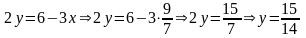 . Найдем значения игрека, для этого найденное значение икса подставим в любое уравнение исходной (первоначальной) системы, получим