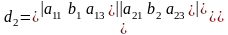 Первое число у индекса указывает число (номер) строки, второе число – номер столбца. Сам определитель обозначается буквой d.