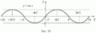 Тригонометрические функции. При построении тригонометрических функций мы используем радианную меру измерения углов. Тогда функция y = sin x представляется графиком (рис. 19). Эта кривая называется синусоидой.