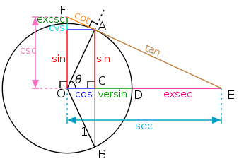 Тригонометрические функции - вид элементарных функций. Обычно к ним относят синус (sin x), косинус (cos x), тангенс (tg x), котангенс (ctg x), Обычно тригонометрические функции определяются геометрически, но можно определить их аналитически через суммы рядов или как решения некоторых дифференциальных уравнений, что позволяет расширить область определения этих функций на комплексные числа.