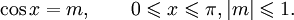 Функция y = cosx непрерывна и ограничена на всей своей числовой прямой. Функция y = arccosx является строго убывающей. cos (arccosx) = x при