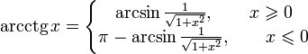 Обра́тные тригонометри́ческие фу́нкции (круговые функции, аркфункции) - математические функции, являющиеся обратными к тригонометрическим функциям. К обратным тригонометрическим функциям обычно относят шесть функций: аркси́нус, аркко́синус, аркта́нгенс, арккотангес. Название обратной тригонометрической функции образуется от названия соответствующей ей тригонометрической функции добавлением приставки "арк-" (от лат. arc - дуга). Это связано с тем, что геометрически значение обратной тригонометрической функции можно связать с длиной дуги единичной окружности (или углом, стягивающим эту дугу), соответствующей тому или иному отрезку. Изредка в иностранной литературе пользуются обозначениями типа sin−1 для арксинуса и т.п.; это считается не совсем корректным, так как возможна путаница с возведением функции в степень −1. Основное соотношение