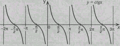8. Графиком функции у = ctgx является тангенсоида, полученная сдвигом графика y= tgx вдоль оси Ох влево на /2 и умножением на (-1) (рис)