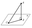 Наклонной, проведенной из данной точки к данной плоскости, называется любой отрезок, соединяющий данную точку с точкой плоскости, не являющийся перпендикуляром к плоскости. Конец отрезка, лежащий в плоскости, называется основанием наклонной. Отрезок, соединяющий основания перпендикуляра наклонной, проведенных из одной и той же точки, называется проекцией наклонной.
