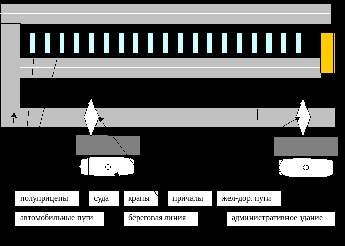 Одним из основных действующих транспортных узлов в работе терминалов является контейнерный терминал морского порта.
