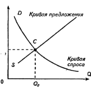 В точке пересечения С объем предложения будет равен объему спроса Qo, и устанавливается цена равновесия Рo, одинаково удовлетворяющая как покупателей, так и продавцов. Qo = ф (Рo) == f (Рo) При любой более низкой цене излишек спроса (конкуренция покупателей) будет толкать цену вверх, а при цене выше равновесной предложение будет превышать спрос (конкуренция продавцов) и цена будет снижаться к уровню равновесия.