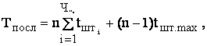 – время выполнения операции, самой продолжительной в технологическом процессе (мин); tштi – норма времени на выполнение i-й операции (мин); n – количество деталей в производственной партии (шт);