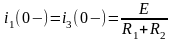 5. Определяем производные свободных токов и напряжений в момент времени непосредственно после коммутации (t = 0+), для чего составим систему уравнений, используя законы Кирхгофа для схемы, изображенной на рис. 3, положив Е = 0.