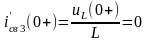 . Находим токи и напряжения докоммутационного режима для момента времени t = (0–). Так как сопротивление индуктивности постоянному току равно нулю, а емкости – бесконечности, то расчетная схема будет выглядеть так, как это изображено на рис. 2. Индуктивность закорочена, ветвь с емкостью исключена. Так как в схеме только одна ветвь, то ток i1(0–) равен току i3(0–), ток i2(0–) равен нулю, и в схеме всего один контур.