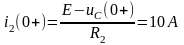 Напряжение на сопротивлении R2 равно Е – uC(0+) = 100 В, напряжение на индуктивности равно напряжению на емкости.