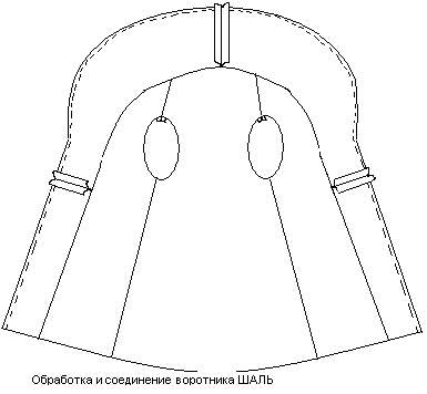 10. В виде сборочных схем дайте характеристику обработки и соединения с изделием воротников в женской верхней одежде с учетом возможных конструктивно – технологических решений (пиджачного типа, шаль, стойка).