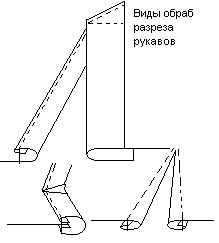 Низ рукавов обрабатывают с клеевыми (в изделиях из плащевых или х/б тканей) или неклеевыми прокладками из нетканых материалов (флизелина) или х/б ткани (бязи, коленкора) и без прокладок.