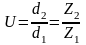 Передаточное число червячной передачи определяется отношением числа зубьев колеса к числу заходов червяка и не зависит от соотношения диаметров.