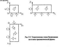 Теоретическая схема базирования - схема расположения опорных точек на базовых поверхностях детали при совмещении заготовки с координатными плоскостями приспособления.