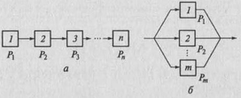 При расчленении сложной системы на отдельные элементы, для каждого из которых можно определить вероятность безотказной работы, для расчета надежности широко используют структурные схемы. В этих схемах каждый i - й элемент характеризуется своей вероятностью Pi безотказной работы в течение заданного периода времени. Исходя из этих данных, определяют вероятность безотказной работы P(t) всей системы.