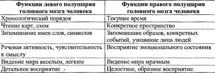 Специализация мозговых полушарий у человека достигла наивысшего развития. Различия в функциях правого и левого полушарий: