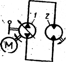 Различия рассматриваемых ГИДРОПРИВОДОВ проявляются при танализе их характеристик; графиков изменения общего кпд згп, момента на валу гидродвигателя Мгм и мощности привода Nпдв в зависимости от частоты вращения вала гидродвигателя. Первый гидропривод характеризуется постоянством момента на валу гидродвигателя, что при увеличении частоты вращения вала приводит к увеличению мощности, и поэтому гидропривод должен иметь мощность, необходимую для создания на валу гидродвигателя наибольшего момента при наибольшей частоте его вращения. Второй гидропривод в отличие от первого характеризуется постоянством МОЩНОСТИ, Что при изменении частоты вращения вала гидродвигателя ПРИВОДИТ к изменению момента по гиперболической кривой. Оба гидропривода имеют примерно одинаковую экономичность и характеризуются большим диапазоном изменения частоты вращения вала гидродвигателя, поскольку у гидропривода, осуществленного по первой гидросхеме, мощность достаточна для работы на любом скоростном режиме, он имеет универсальное назначение. Гидропривод выполненный по второй схеме, можно применять в грузоподъемных механизмах, он позволяет обеспечивать необходимую грузоподъемность при соответствующей скорости подъема и наименьшей мощности привода. У таких гидроприводов примерно одинаковая сложность гидрооборудования у одного вследствие конструкции насоса и его регулирующих устройств, у другого - из-за аналогичной конструкции гидромотора, не второй гидропривод имеет большую массу из-за наличия в схеме бака. В объемном гидроприводе возможно и смешанное регулирование скорости выходного звена, применением регулируемого насоса и гидродвигателя. На малой частоте вращения вала гидродвигателя регулирование осуществляется путем увеличения подачи насоса. При сохранении момента на валу гидродвигателя неизменным этот вид регулирования связан с увеличением мощности, снимаемой с вала приводного двигателя. На большой частоте вращения путем регулирования расхода через гидродвигатель достигается постоянство мощности и уменьшение момента на валу гидродвигателя по гиперболической кривой.