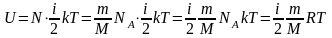 Так как молекулы идеального газа не взаимодействуют друг с другом, то внутренняя энергия U идеального газа равна сумме кинетических энергий хаотически движущихся молекул: