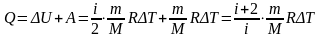 Для одноатомного газа i = 3, для двухатомного i = 5, для трех (и более)атомного i = 6.