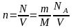 Количеством вещества ν называют величину, равную отношению числа молекул (или атомов) N в данном теле к числу атомов NA в 0,012 кг углерода, т.е. ν = N/ NA (NA - число Авогадро).