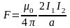 Сила взаимодействия для прямолинейных проводников, приходящаяся на единицу длины, определяется по формуле: