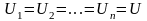 При параллельном соединении конденсаторов напряжения на каждом конденсаторе одинаковы и равны напряжению на клеммах батареи
