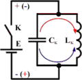 Вообще, вроде затухание должно проходить по экспоненте. Короче, ни формул, ни всяких доказательств и прочей ерунды писать не буду, важно понять суть процесса. Если вкратце, то кратковременно замкнув ключ К в контуре возникают затухающие колебания. Процесс понятен?