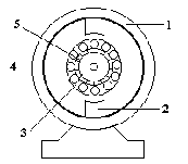 Индуктор состоит из станины 1 цилиндрической формы, изготовленной из ферромагнитного материала, и полюсов с обмоткой возбуждения 2, закрепленных на станине. Обмотка возбуждения создает основной магнитный поток.