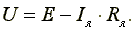 Зависимость напряжения на внешних зажимах машины от величины тока нагрузки.