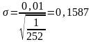Если стандартное отклонение (σri) стоимости финансового инструмента в течение дня составляет 0,01, а в году насчитывается 252 торговых дня, то среднегодовая волатильность равна: