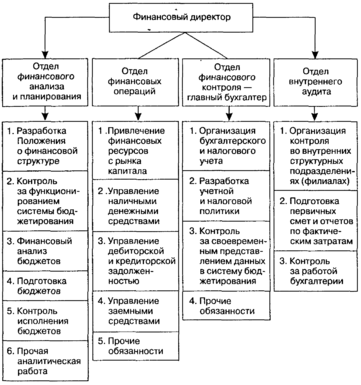 В отечественной практике бухгалтерия часто не включается в структуру финансового отдела, подчиненного финансовому директору (хотя функционально она тесно связана с финансовой службой).