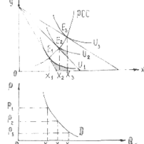 Рис. Реакция потребителя на изменение цены. РСС - линия "цена-потребление" для товара Х