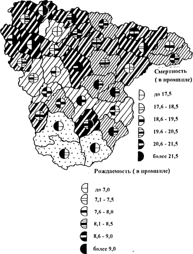Низкий уровень рождаемости и высокая смертность уже в 1989 г. вызвали процесс депопуляции населения. Среднеобластная величина естественной убыли в 1996 г. - 8,5 промилле. Даже в областном центре она значительна - 5,0 прмилле.