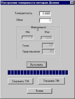 в поле Offset укажите величину для расчета радиуса поиска соседних точек. Радиус поиска определяется как R=Offset*D/2, где D - диагональ минимального прямоугольника, описывающего TIN.