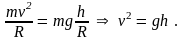 Очевидно, что применение закона сохранения энергии к переходу из начального состояния в точку отрыва даст в явном виде связь между скоростью тела и высотой рассматриваемой точки.