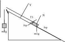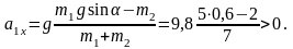 m1a1 x= m1gsinα—T, m2a2η = T - m2g , a1 x = a2η (4)