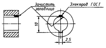 5.8 При ремонте изделия наплавкой, заливкой (при помощи сварки, пайки и т.п.) на ремонтном чертеже указывают наименование, марку, размеры материала, используемого при ремонте, а также обозначение стандарта на материал (рисунок 4).