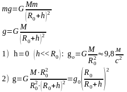 - радиус Земли. Рассмотрим зависимость ускорения свободного падения от высоты подъема над поверхностью Земли: