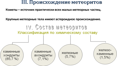 - отобразил главные свойства метеоритов и отличие от других космических тел.