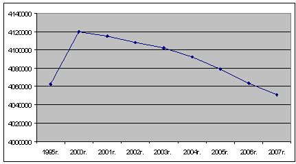 На 1 января 2007г. республика Башкортостан по численности населения входит в первую семерку субъектов РФ. Проследим, как она менялась в период с 1995 по 2007гг.