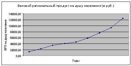Динамика ВРП на душу населения показывает, что он имеет устойчивую тенденцию роста.