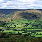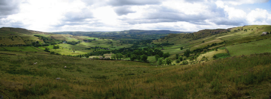 The Peak District forms the southern end of the Pennines and much of the area is uplands above 1,000 feet (300 m), with a high point on Kinder Scout of 2,087 feet (636 m). Despite its name, the landscape lacks sharp peaks, being characterised by rounded hills and gritstone escarpments (the “edges”). The area is surrounded by major conurbations, including Huddersfield, Manchester, Sheffield, Derby and Stoke-on-Trent.