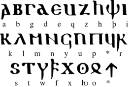 We cannot leave unnoticed such important stage of RA development as Ulfila`s Gothic alphabet. It has got nothing in common with “gothic” variants of Romanticism period. The real Gothic writing system was used by the Goths on Gothland Island and later on the territory of Poland, Lithuania and even North Black Sea coast.