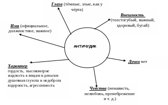 Первое основание (душа героя) в нашей классификации отпадает, потому что «античудики» лишены внутренней наполненности, глубины, духовности. Душа является критерием разграничения персонажей: при наличии души появляются «чудики», при её отсутствии – «античудики».