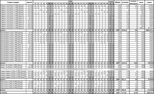 Создадим медиаплан рекламной кампании по радио (ролик 30 секунд) для автомагазина. Мы берем мономедийный вариант размещения (радио) для простоты. В данном магазине продаются автозапчасти для иномарок.