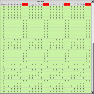 - Переносим выходы в календарный план, равномерно распределяем их по неделям и по дням недели (рис. 3.6.).