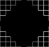Сначала исходный пустой квадрат достраивается до симметричной ступенчатой ромбовидной фигуры как показано на следующем рисунке.