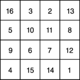 Магический квадрат – древнекитайского происхождения. Согласно легенде, во времена правления императора Ю (ок. 2200 до н.э.) из вод Хуанхэ (Желтой реки) всплыла священная черепаха, на панцире которой были начертаны таинственные иероглифы (рис. 1,а), и эти знаки известны под названием ло-шу и равносильны магическому квадрату, изображенному на рис. 1,б. В 11 в. о магических квадратах узнали в Индии, а затем в Японии, где в 16 в. магическим квадратам была посвящена обширная литература. Европейцев с магическими квадратами познакомил в 15 в. византийский писатель Э.Мосхопулос. Первым квадратом, придуманным европейцем, считается квадрат А.Дюрера (рис. 2), изображенный на его знаменитой гравюре Меланхолия 1. Дата создания гравюры (1514) указана числами, стоящими в двух центральных клетках нижней строки. Магическим квадратам приписывали различные мистические свойства. В 16 в. Корнелий Генрих Агриппа построил квадраты 3-го, 4-го, 5-го, 6-го, 7-го, 8-го и 9-го порядков, которые были связаны с астрологией 7 планет. Бытовало поверье, что выгравированный на серебре магический квадрат защищает от чумы. Даже сегодня среди атрибутов европейских прорицателей можно увидеть магические квадраты.