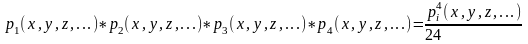 Таким образом, замена р1, р2, р3 на x, y и z является обратимой (число р4 в обоих случаях является зависимой переменной).