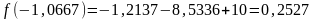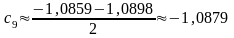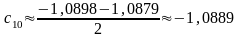 10. Продолжим уточнение корня по схеме. Для этого найдём значения функции на концах суженного отрезка: